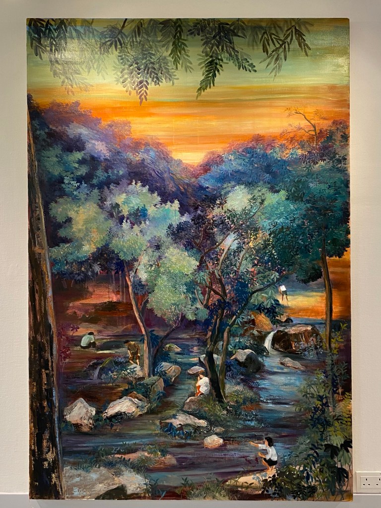 而盧的Nothing to Envy沾染了某種巴洛克式的遺風,舞台式的構圖與渲爛的夕陽色彩。若求精細也許畫面上確有拙筆,但斷不遮蓋其妙筆之處。同時在展中孤冷的各樣美色添上一絲的暖意。